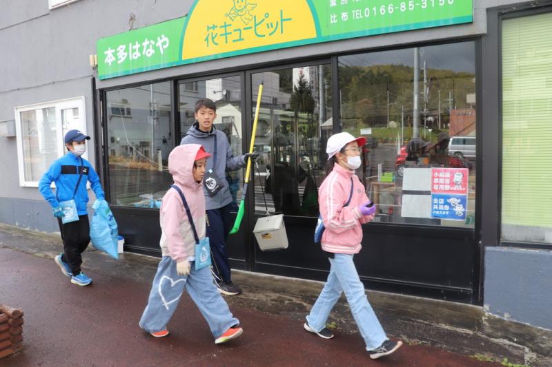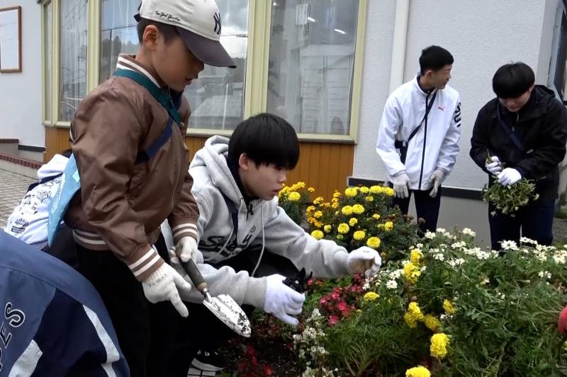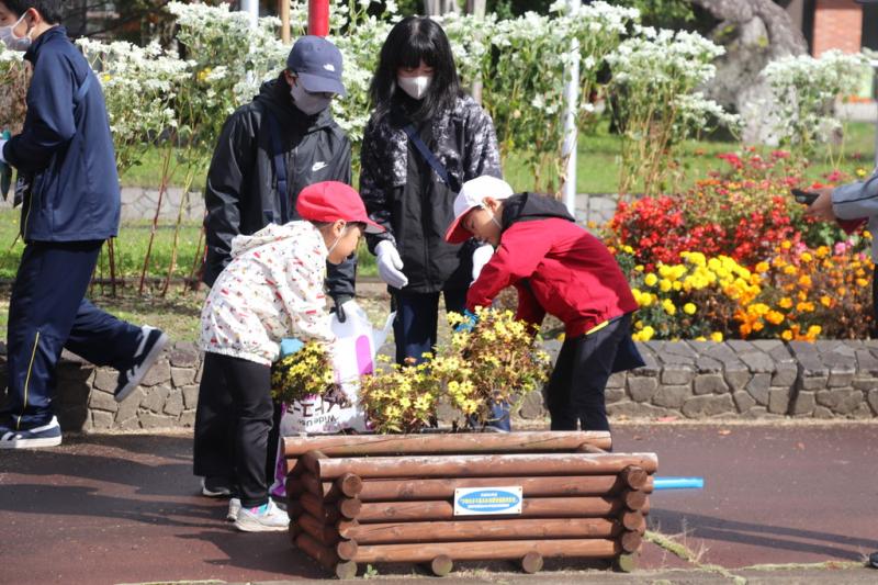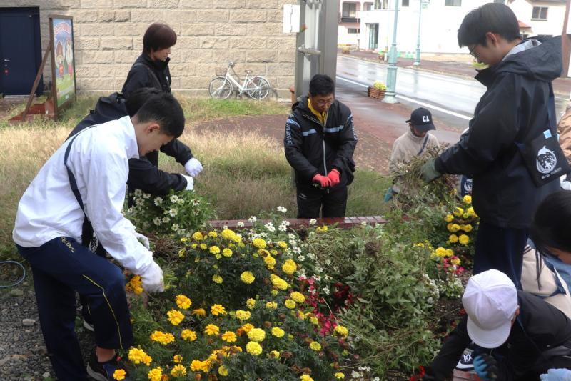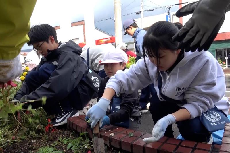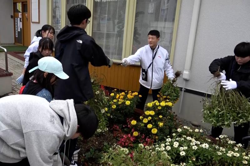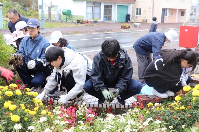 10月10日、小・中学生と地域ボランティア、教職員等の180名が、地域への関心と愛着を深めることを目的に、町内花壇の花抜き作業や移動時のゴミ拾いなど環境美化ボランティア活動を行いました。中学生をリーダーとしたグループ活動では、役割分担をしながら全員で協力して、地域をきれいに保つ大切さを実感し、また、相互の交流も深めながらボランティア活動に取り組む心情や態度を育みました。