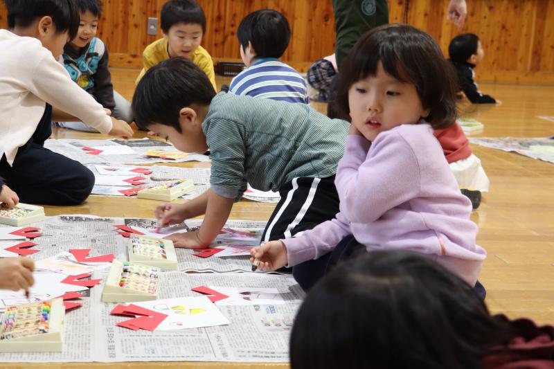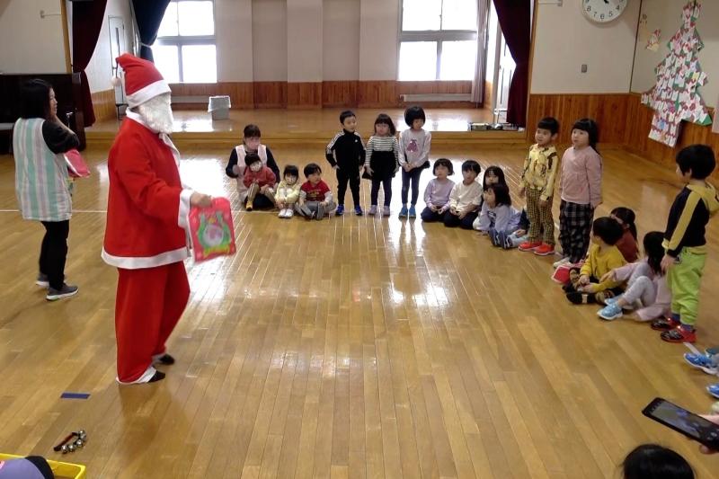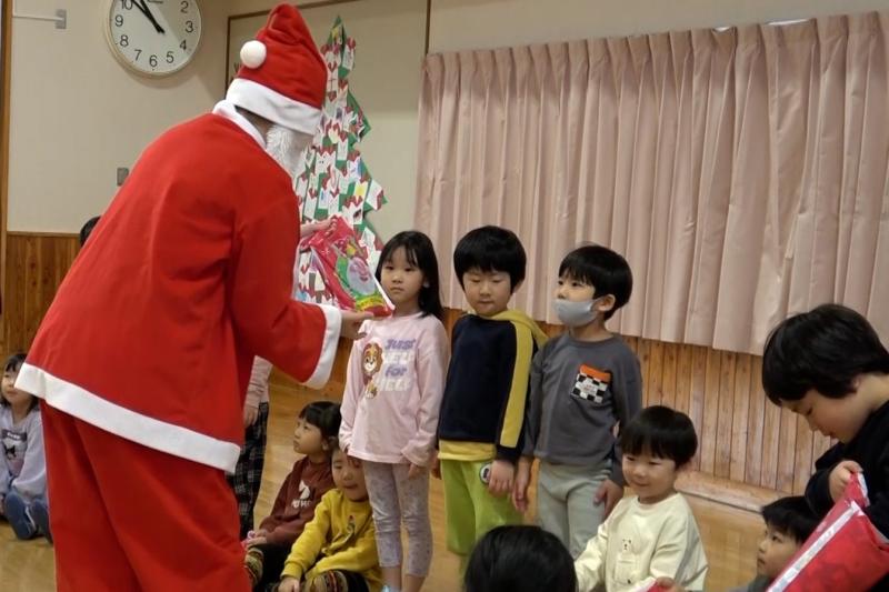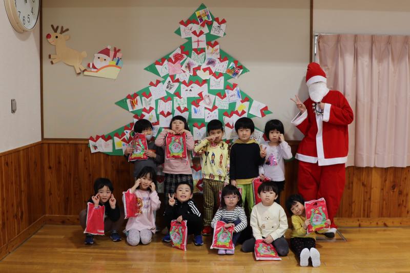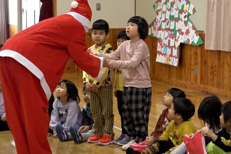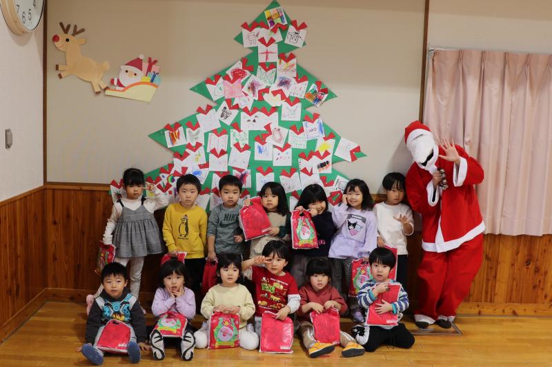 \ 突撃!協力隊がゆく📸/12月19日、幼児センターで「クリスマス会」が行われました。子供たちは、大きな紙でできたクリスマスツリーに、クレヨンやシールで色々な飾りを描いて貼り付けて完成させました。その後、サンタクロースが登場して、子どもたちは順番にプレゼントをもらい、笑顔で溢れていました。最後は、みんなで作ったツリーの前で、サンタクロースと一緒に記念撮影をしました。(地域おこし協力隊 石山達彦)