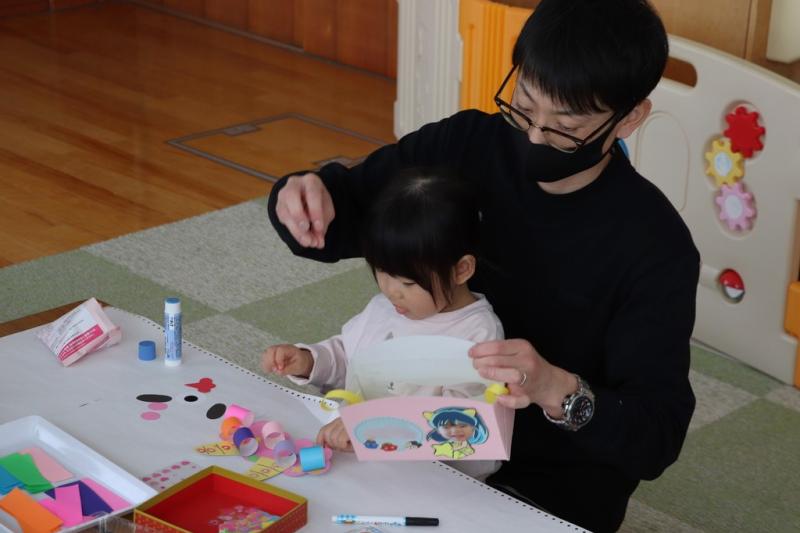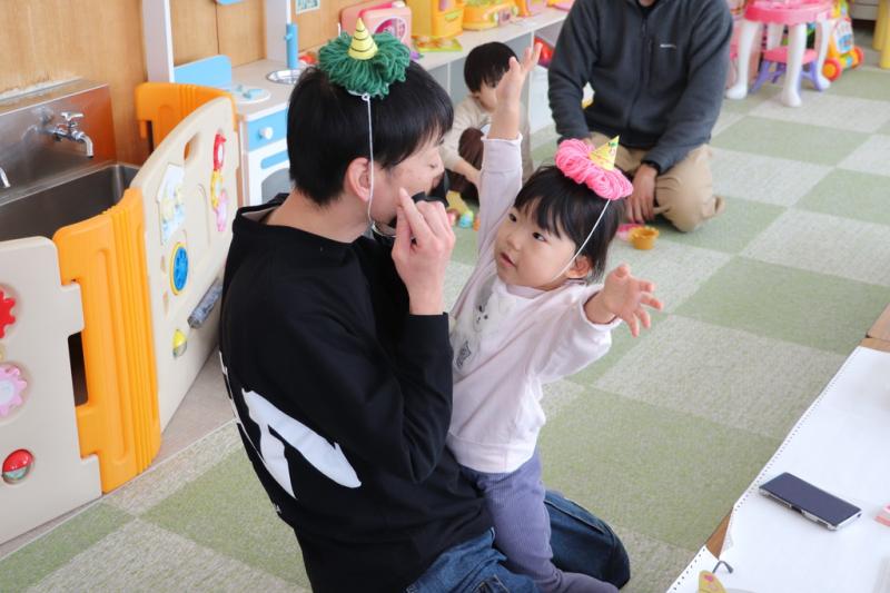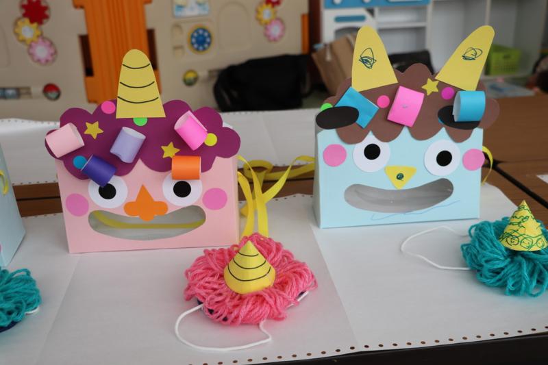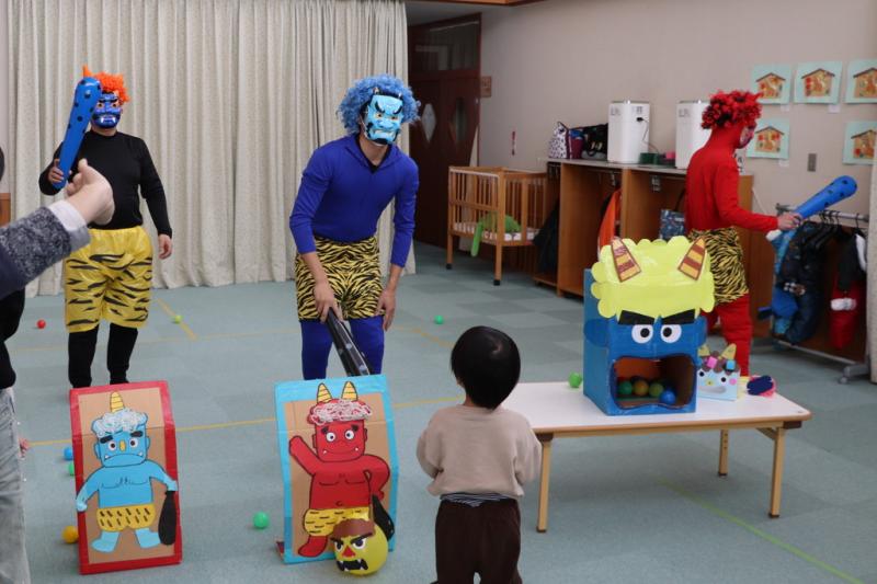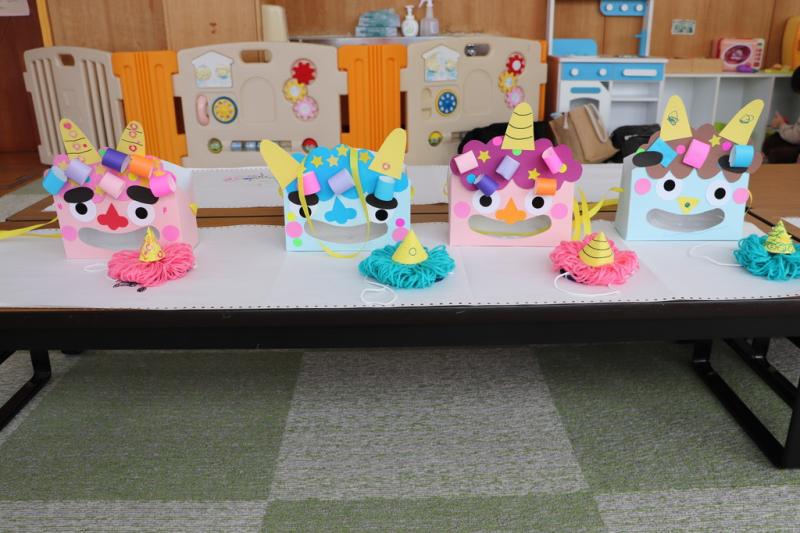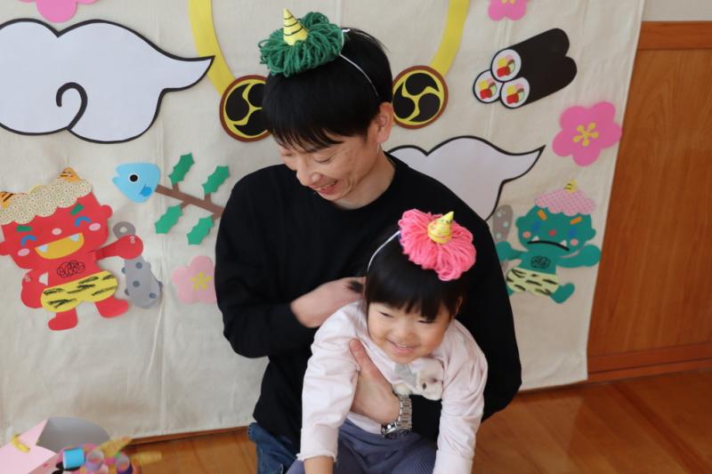 \ 突撃!協力隊がゆく📸/1月30日、のびっこランドで親子あそび「鬼のお面作り」に親子4組が参加して鬼の顔のカバンと鬼の角帽子を作りました。親子で一緒に楽しく、好きな色のマジックで模様を書いたり、シールや折り紙を貼ってバックを作りました。また、毛糸で鬼の角がついた帽子も作りました。その後、子どもたちは、お父さんたちが変装した鬼に向かって「鬼は外、福は内」とボールを投げて、節分の豆まきを行いました。(地域おこし協力隊 石山達彦)