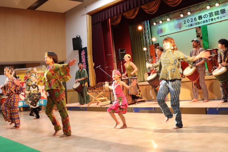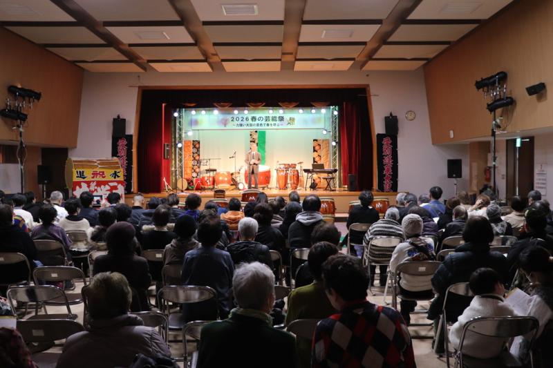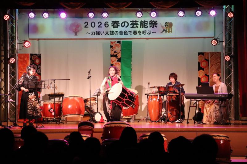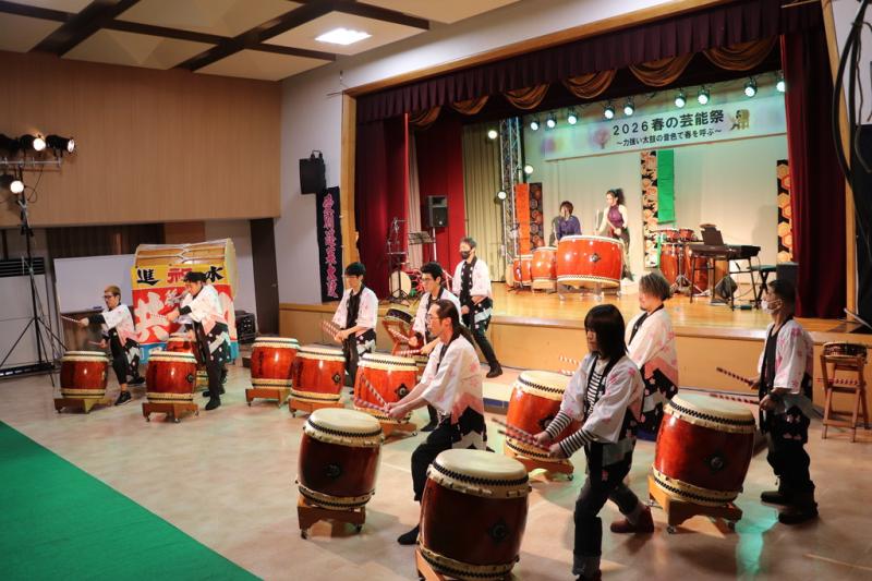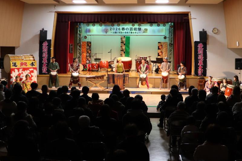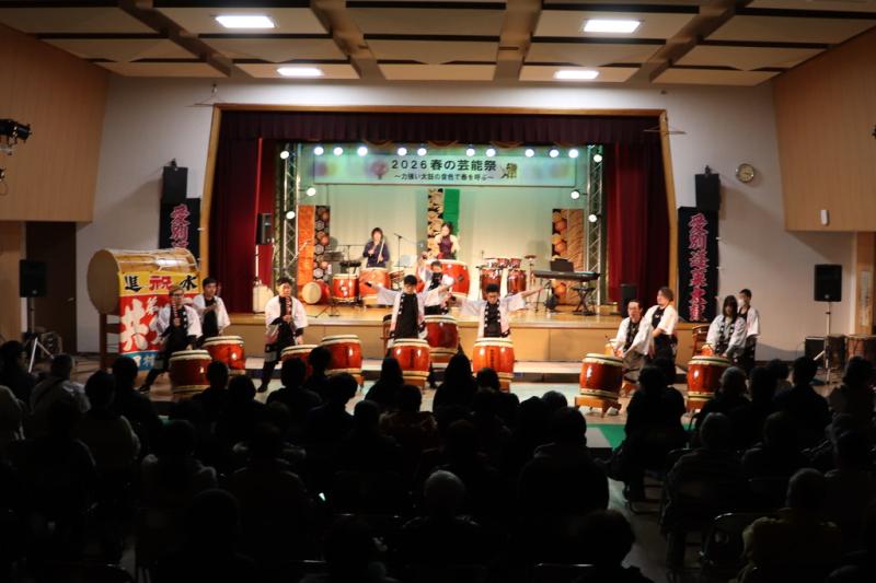 \ 突撃!協力隊がゆく /2月22日、愛別町総合センターで「春の芸能祭2026 ~力強い太鼓の音色で春を呼ぶ~」が開催されました。愛別蓬莱太鼓から始まり、北海道美深高等養護学校あいべつ校「嵩莉夢太鼓」、サウンドファミリードゥニドゥニ、和音アンサンブルユニットwith百福と4組が演奏演舞を行いました。最後は、出演者全員で北海盆唄を披露し、春を待ちこがれるたくさんの観客は、一緒に手拍子をして、一体となり、大盛り上がりで終わりました。(地域おこし協力隊 石山達彦)