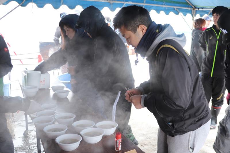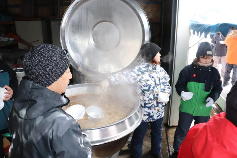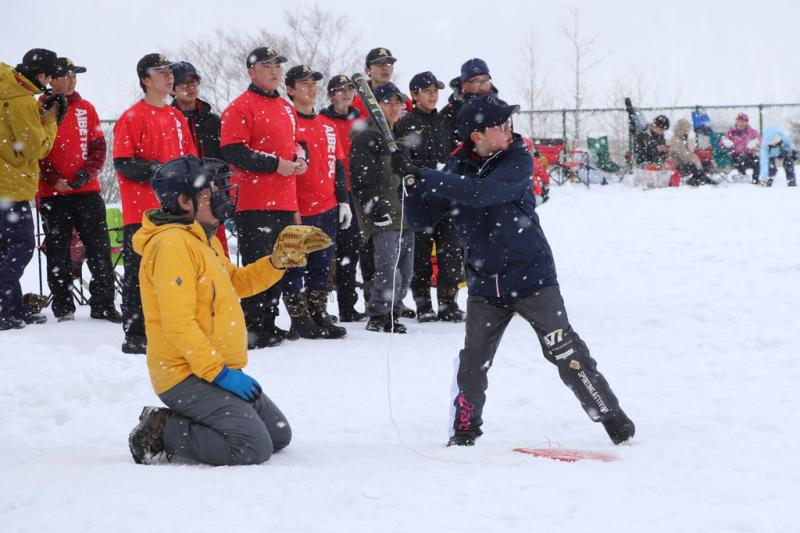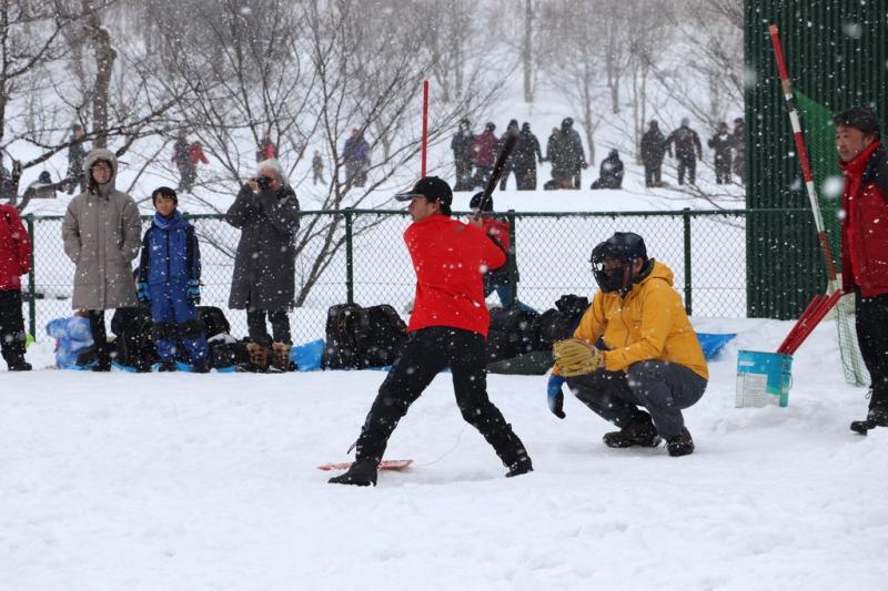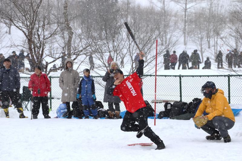 3月1日、第42回愛別町雪中ソフトボール大会があいべつ球場と山村広場で開催されました。町内外から30チーム(町内8チーム・町外22チーム)が参加しました。数日前からの天候の影響でグランドコンディションは厳しく、さらに当日は風が強い吹雪にも見舞われましたが、選手たちは、そんな状況に負けず、大きな声援と笑い声で大いに盛り上がっていました。試合後には、参加者に愛別特産のきのこ汁やジンギスカンのバーベキューが振る舞われ、美味しい香りが大会会場を包んでいました。